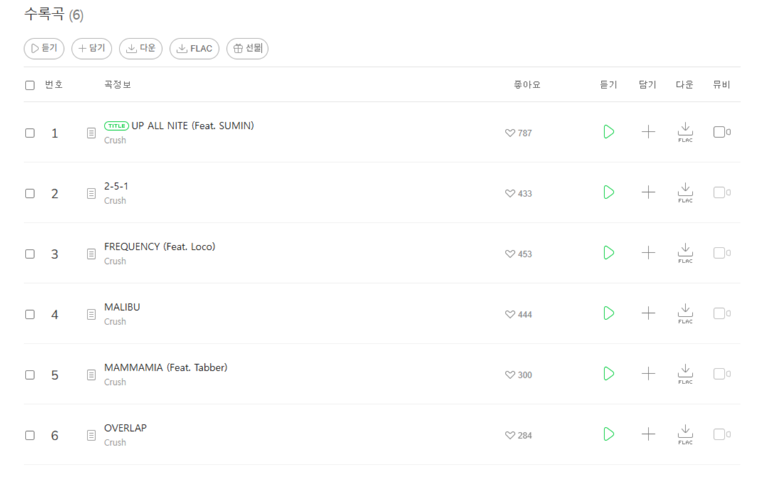 총, 6곡의 네임들도, 낭만적이고 소울이 가득했던 과거 크러쉬와 달리