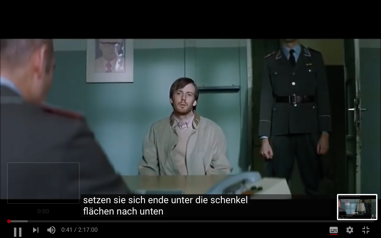 wiesler( ohne aufzuschauen) Hände unter Ihre Schenkel, Flächen nach unten. Verwirrt folgt der Gefangene der Anweisung. Endlich blickt Wiesler auf.