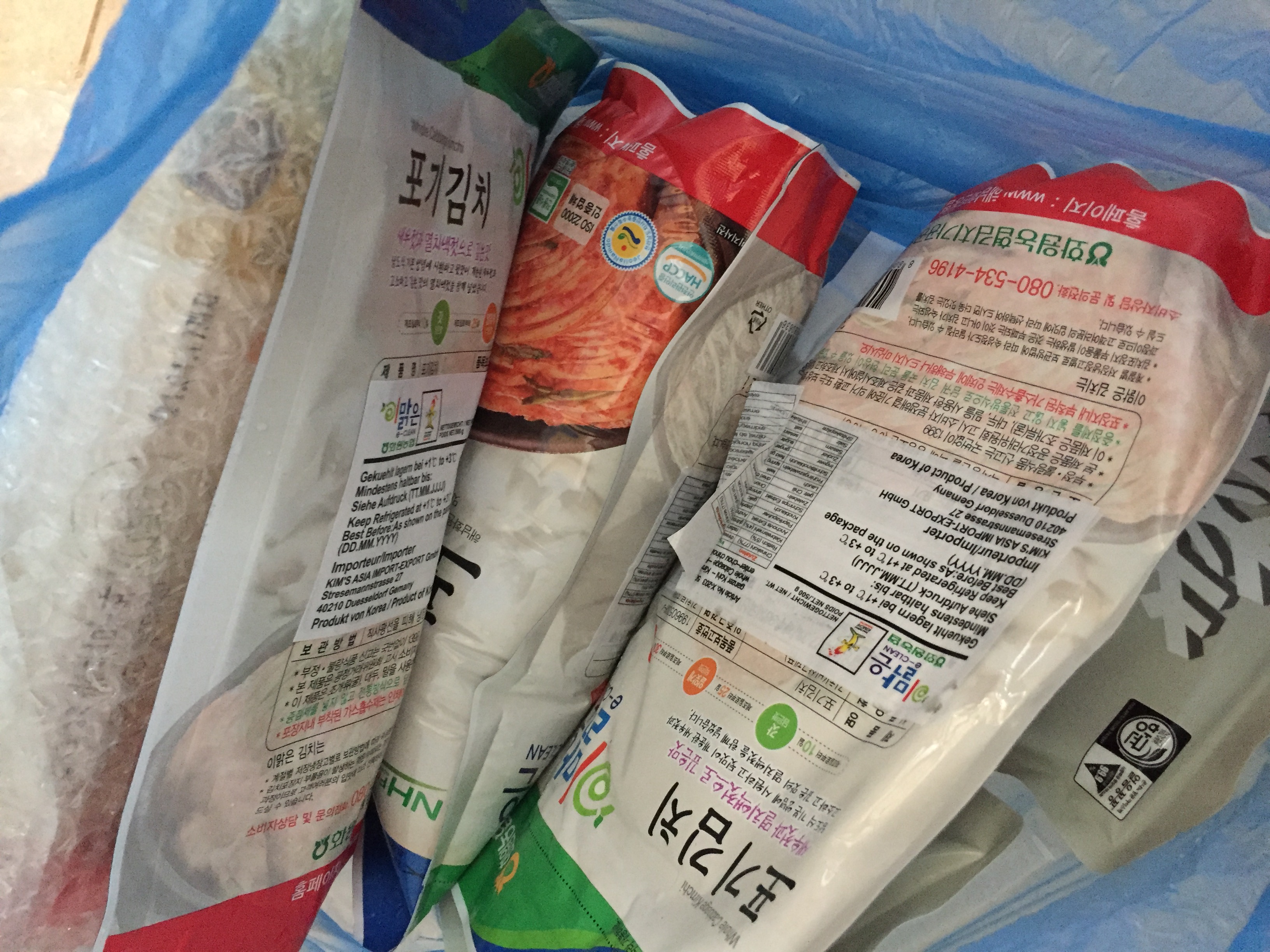 초기에는 몰랐어서, 한국에서 부모님이 한국 제품을 보내주셨는데 몇년 전부터 독일내에 인터넷으로도 주문하는 곳을 알게되서 가끔 한번씩 꼭 주문합니다. 항상 김치와 라면은 꼭 주문을 해요 한국에서는 김치를 자주 먹지 않았는데, 여기서는 밥과 김치만 있어도 얼마나 맛있는지. 웬만하면, 맛이 있던 없던, 해외에서 먹는 건 진짜 감지덕지죠. 순대도 먹고 싶었는데, 먹고 싶은거 다 담다간 큰일 납니다. >.<