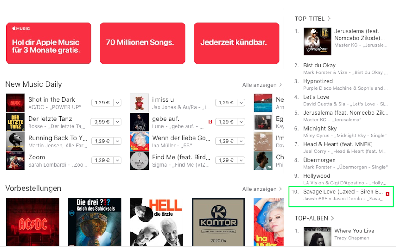오스트리아와 다른 나라 차트도 봤는데, BTS가 확실히 미국에서 인기가 젤 많은 것 같습니다. 오스트리아에서는 보이지 않는데, 독일에서는 그래도 아직, 다이너마이트가 오래 걸려있네요. ↓