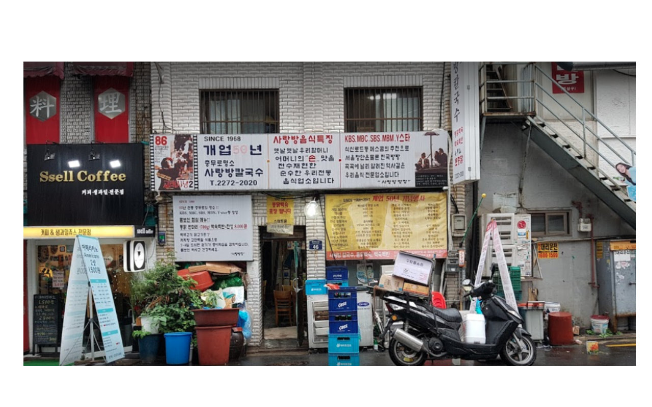 가게 명칭은 <사랑방 칼국수> 집입니다.