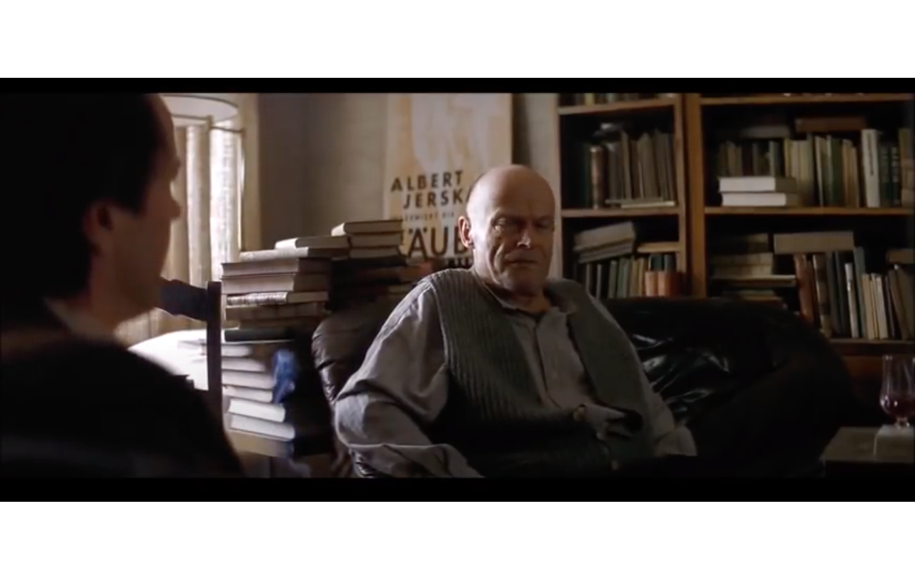 극작가 드라이만(주연)이 친구를 찾아갑니다. 그의 이름은 Jerska(예r스카), 영화에서 유명한 연극연출가로 나오고 있습니다. (방 밖에는 왁자지껄 싸우는 소리, 사람들의 소리가 들립니다.)