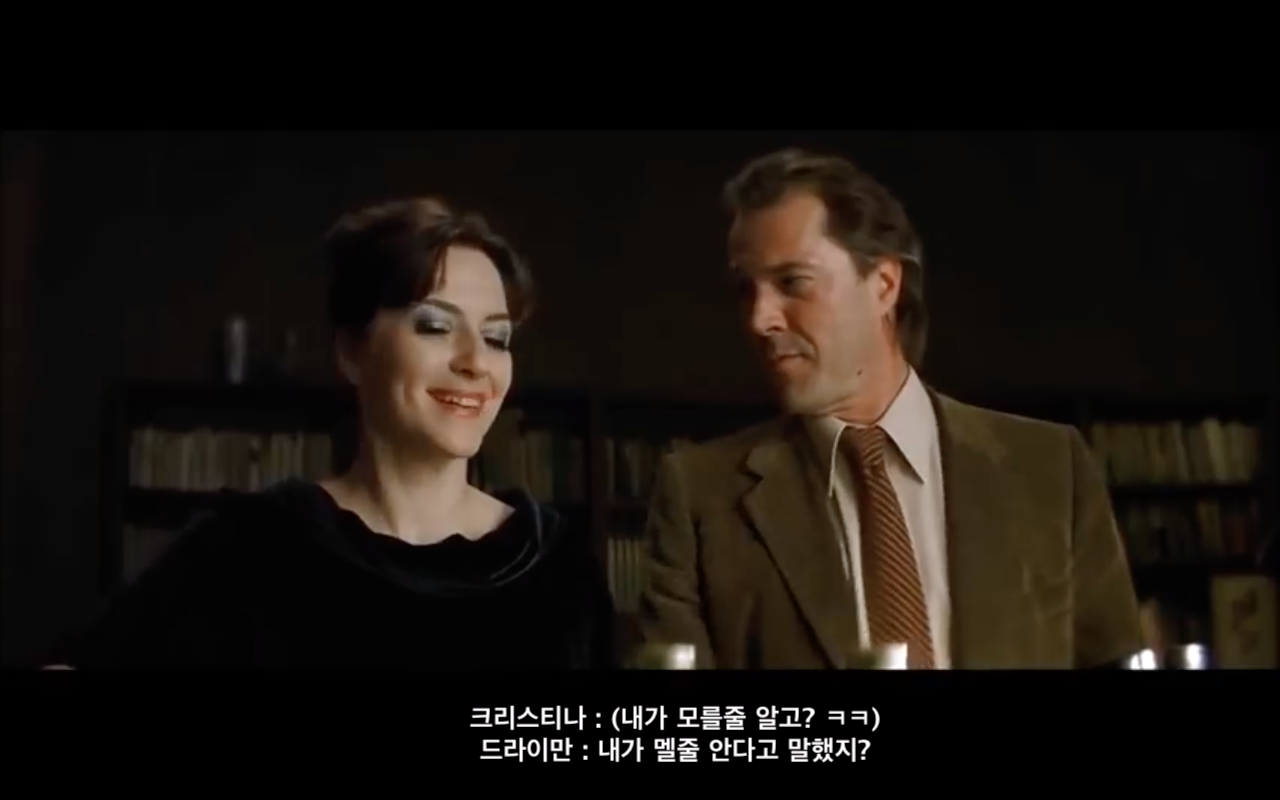 힘이 장사인 걸 뽑내는 그녀...(드라이만의 구라때문에 빡친 그녀는 와인 잔으로 그녀의 힘을 과시합니다.) 갑자기 독일 마트에서 무거운 짐을 든 직원들이 떠오르는 군요..