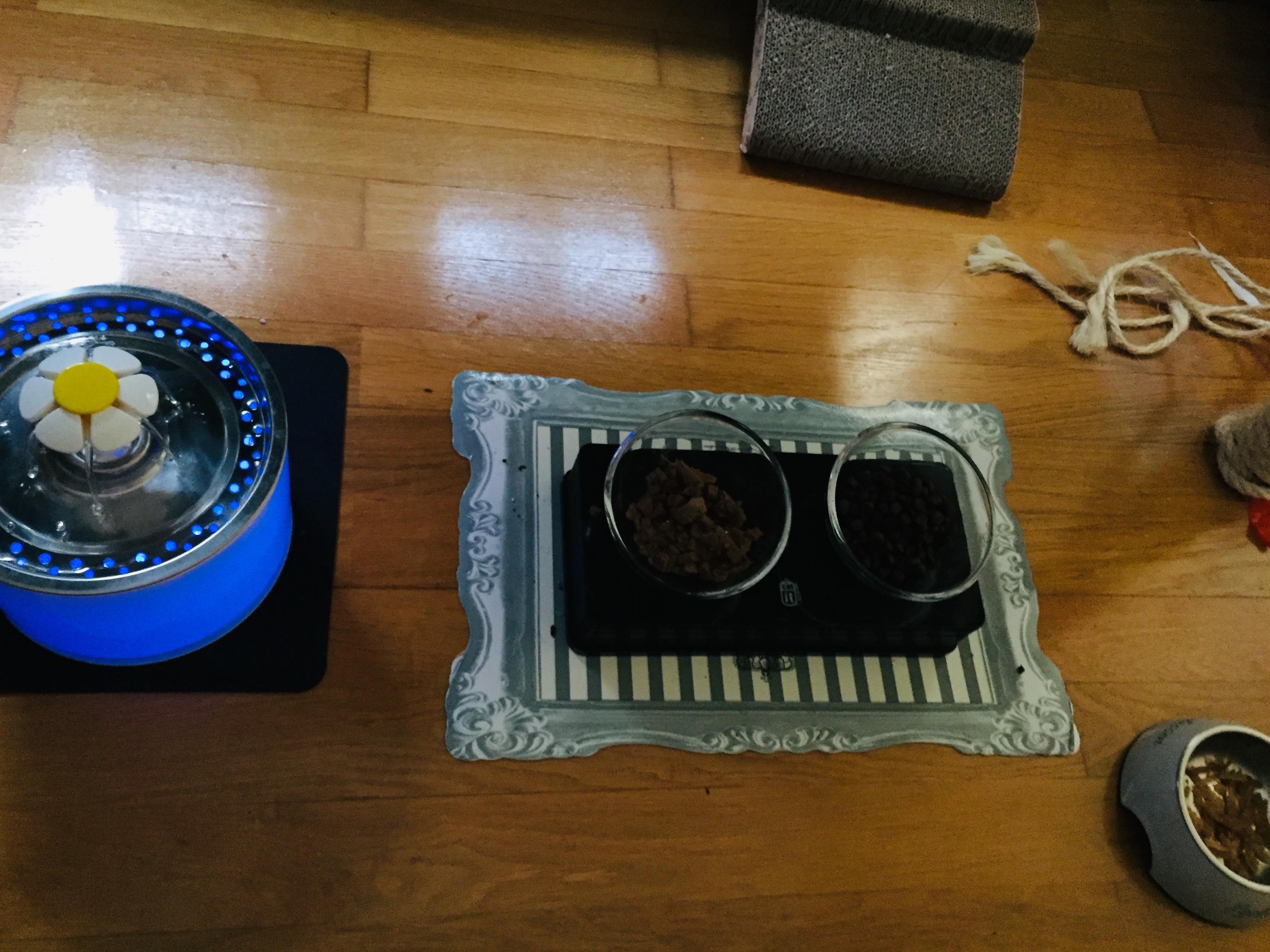 습식사료와 건식 사료를 모두 다 하루에 걸쳐 줍니다. 아, 그리고 물을 잘 마시지 않는 고양이들은 흐르는 물을 잘 먹는 편입니다. 물도 재밌게 먹는 걸 좋아해요. 그리고 작은 그릇엔 간식까지 있습니다. 저렇게 사료를 나두면, 먹고 싶을때 먹고 욕심내지 않습니다. 하루에 두번 갈아치워 주는데, 대체적으로 습식(통조림)을 두번 갈아주고 건식은 아침점심저녁으로 저 양을 다 먹는것 같다. 생각보다 신경써야 할 부분이 많습니다. 잘못 관심이 엇나가면, 고양이는 병을 얻기에 쉬운 동물이라 잘 보살펴야 합니다.