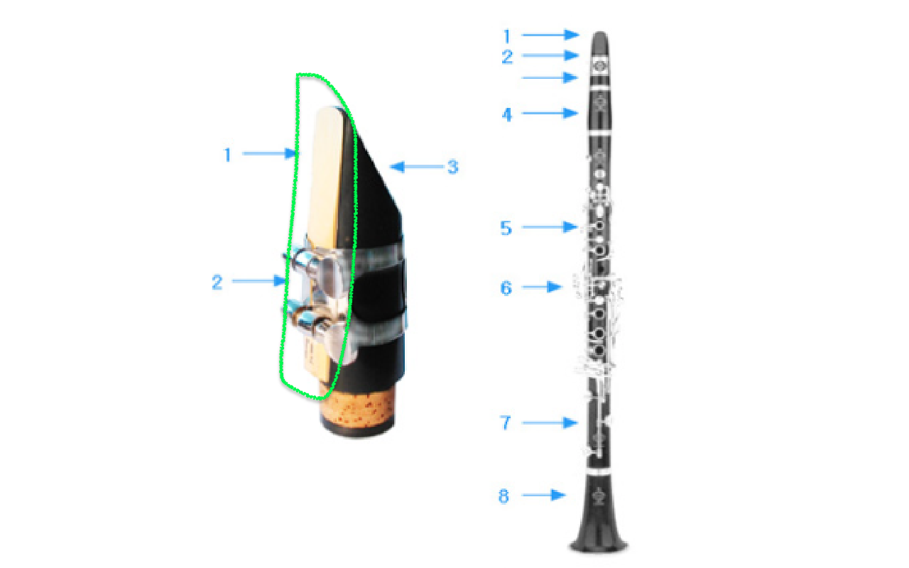 악기마다 이조되는 악기가 있고 그렇지 않은 악기들이 있다. 클라리넷은 이조악기인데다가, 리드를 가지고 있는 악기이다. 연두색으로 된 부분, 나무로 된 것이 바로 리드이다. 두개의 리드를 사용하는 악기도 있지만, 클라리넷은 1개의 리드를 가진다. 그래서 한개의 리드를 가지면 홑리드, 두개의 리드를 가지면 겹리드 라고 말한다. 이 리드들이 없으면 진짜 클라리넷의 소리를 낼수가 없다. 그래서 이 리드가 굉장히 핵심적인 역할을 하고 있다.