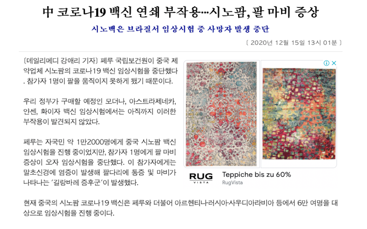 이미 모로코와 이집트도 이 백신을 받았다고 기사에 나오는데, 임상 시험이 이정도면 당연히 중단되어야 한다. 임상시험을 중국 백신으로 한다는 것 자체가 공포다.