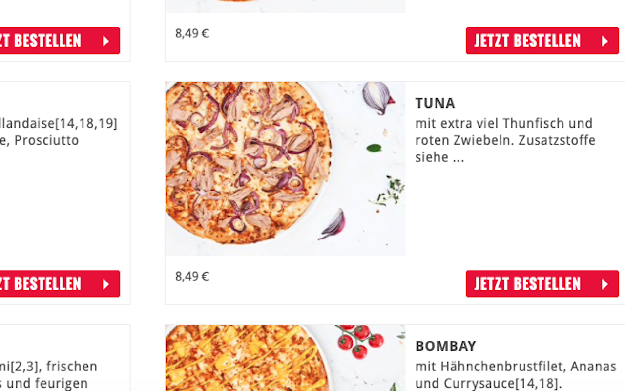 mit extra viel Thunfisch und roten Zwiebeln. 참치가 독일어로 발음이 <툰피쉬>이다.