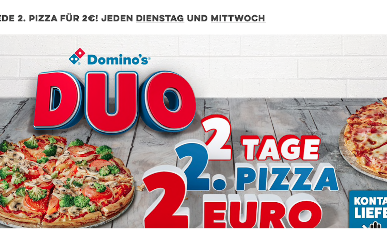 화요일과 수요일은 도미노 피자에서 피자 하나를 2유로로 판다.