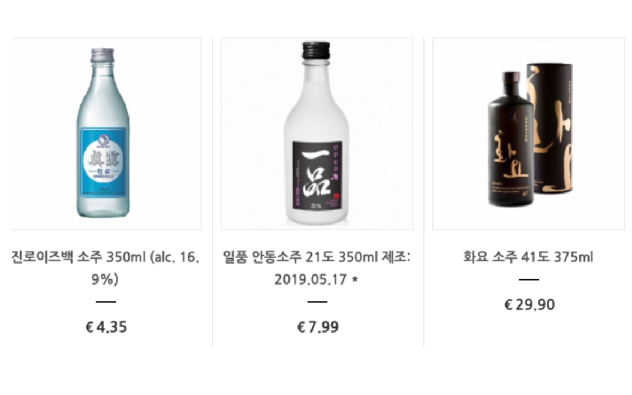 암튼, 한독몰에서 파는 걸 보면, 소주는 4.30센트, 5천원이 넘는 가격!