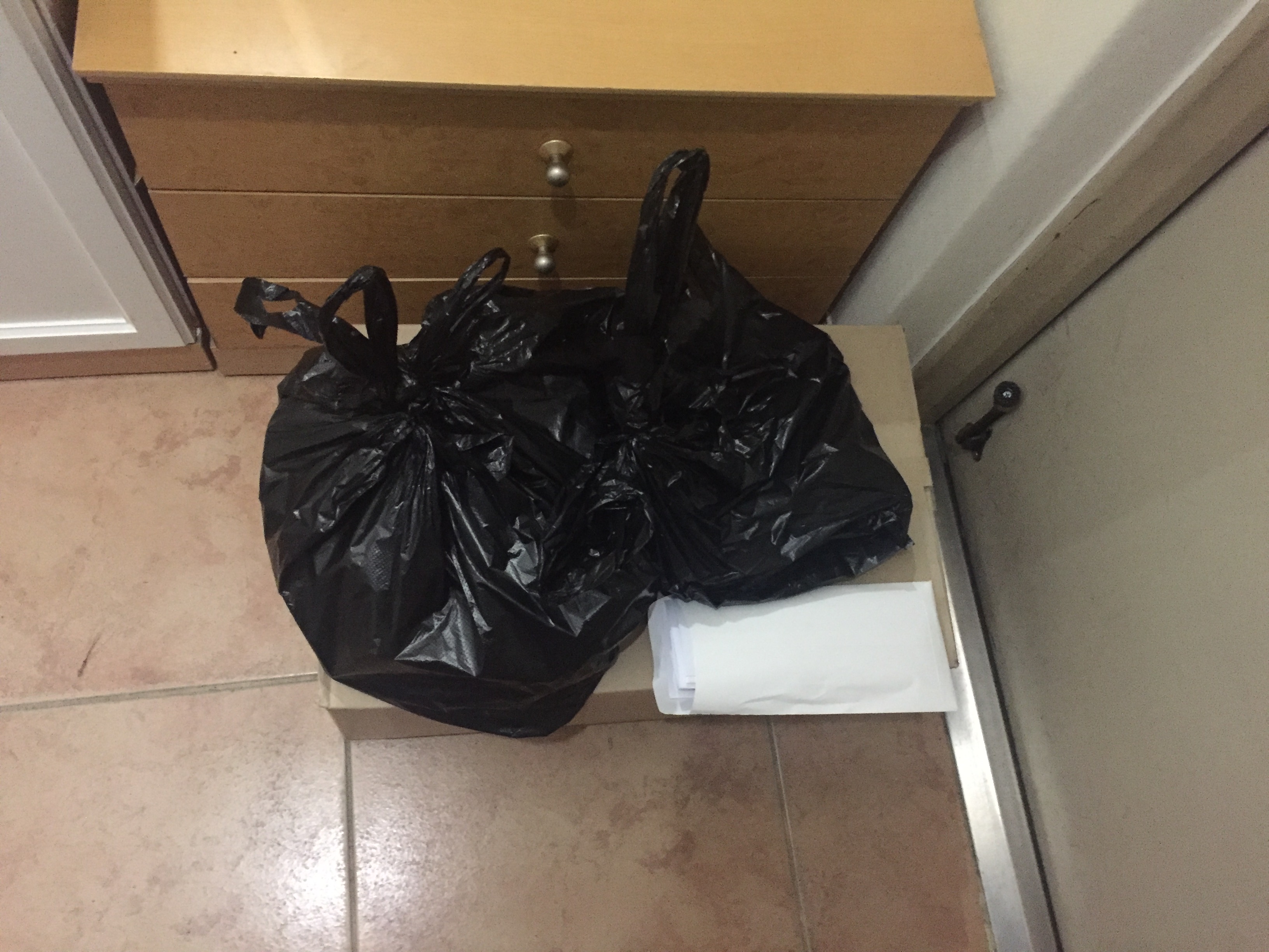 봉투에( 큰 봉지가 2장 들어있다) 내가 자가격리 동안 사용했던 휴지나 쓰레기들을 넣는다. 이것도 확진자와 일반 자가격리자의 방식이 다르다. 집에 혼자 있다고 해도 동선을 짧게 그리고 소독을 자주해야 한다.