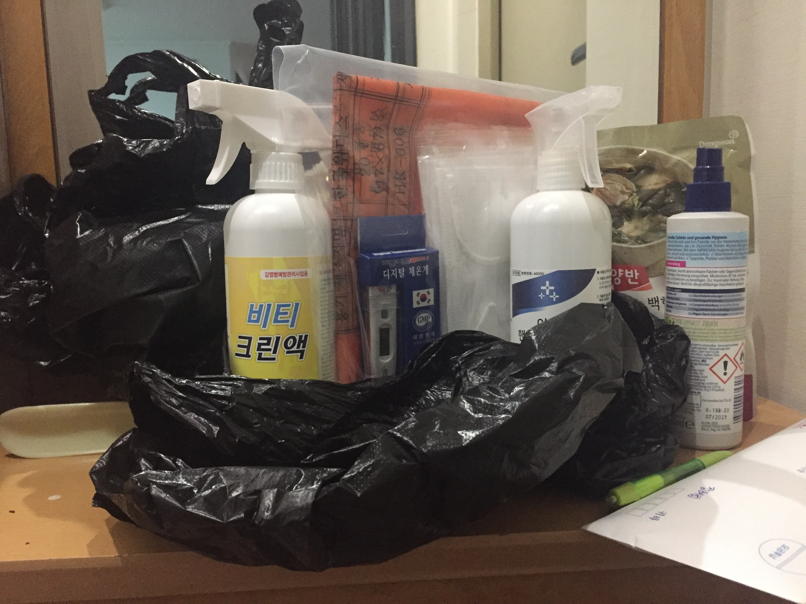 월요일에 그 유명한 자가격리 통지서, 위생키트, 구호물품이 배달 되었다.