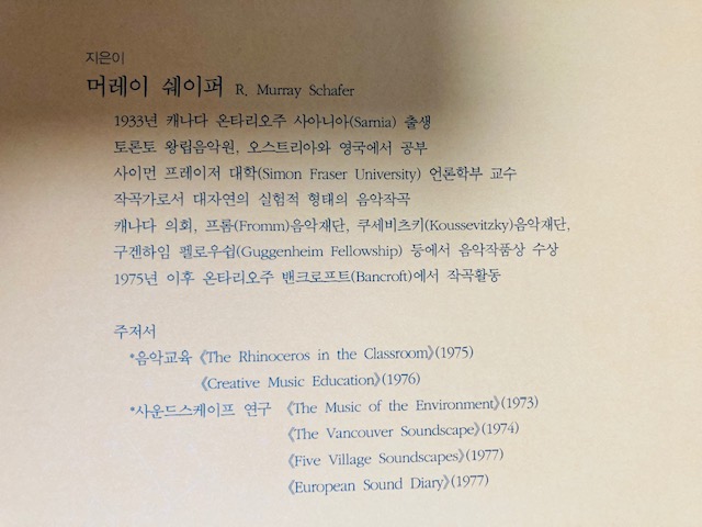 책 소개 / <사운드 스케이프> 세계의 조율, 머레이 쉐이퍼 지음 (2)