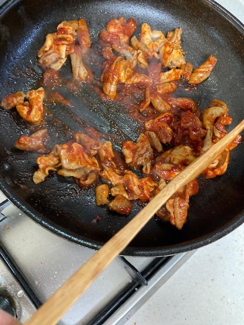 이거 하면서 엄청 기름이 튄다......>.< 그래서 계속 볶아줘야 한다...