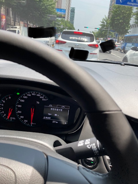 차가 이렇게 빽빽하게 있고, 달릴때는 또 그나마 속도가 50이라 다행이었지만...