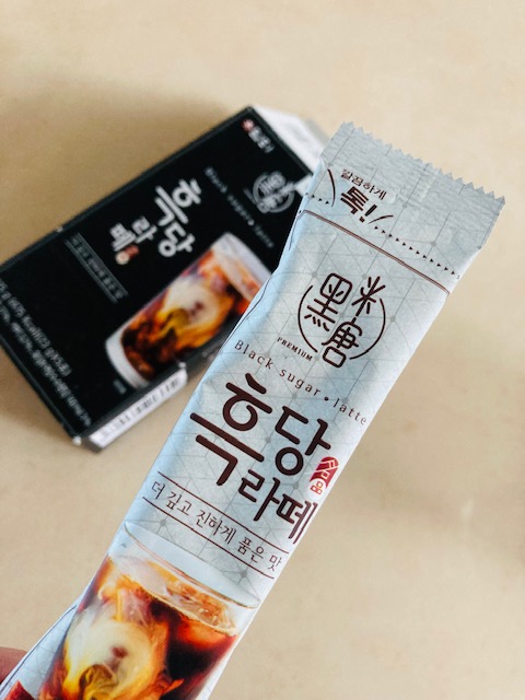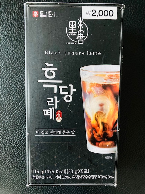 암튼, 그런데 한국에 오면서 특히 새로운 음식문화나 먹을거리가 너무 달라지고 특히 식생활 용품들이 더 많이 달라져서 신기하고 재미가 있다. ㅎㅎ 초기에 다이소를 많이 가서 살 물품등을 사다가 눈에 들어온게 있었다. 내가 내 블로그 이름도 그렇듯이 문방구에 대한 추억이 많았던지라 불량식품이나 잔잔바리에 관심이 많다. 좀 소소하고 저렴하고 예쁘고 귀여운 것? 불량식품 쫀디기는 진짜 아직까지도 사다 먹는 간식중에 하나다. 그러다가 그냥 궁금해서 가져온 흑당라떼!!